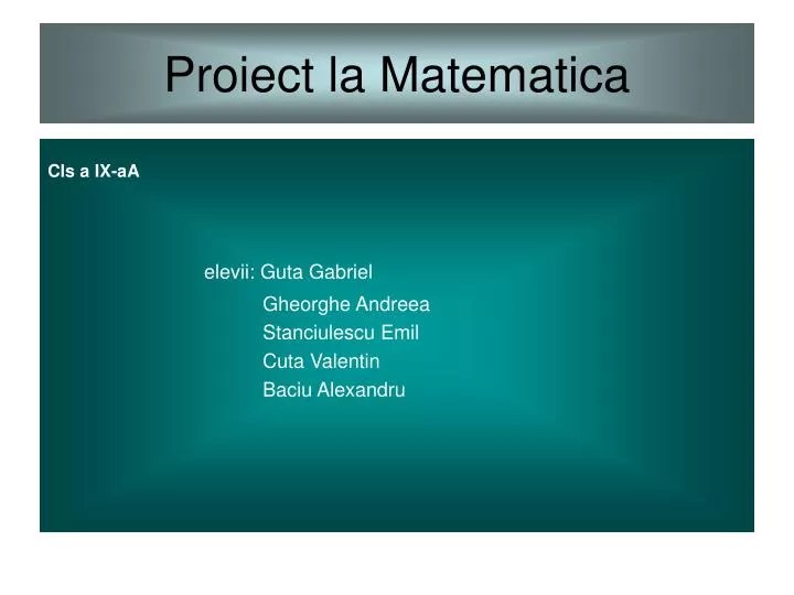 Daca nu stiti, aceasta a aparut inca din.. Matematica este în general definită ca știința ce studiază relațiile cantitative, modelele de structură, de schimbare și de spațiu. How prezi video can supplement and even improve instruction Dar aceste cărţi practic nu mai pot fi găsite sau pot fi găsite cu mare dificultate, unele pentru că au fost de mult epuizate, altele pentru că au apărut ca şi cursuri universitare sau au fost tipărite la edituri... În sens modern, matematica este investigarea structurilor abstracte definite în mod axiomatic folosind logica formală.
